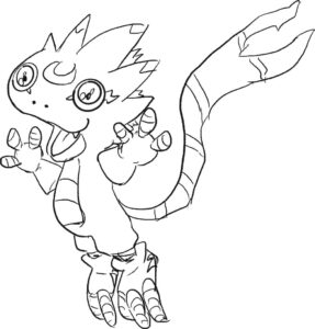 Gekkomon. I’ve always liked him to a small extent, but the colors are hard to get used to… XD I’m slowly warming up to him. I think he looks a bit nicer with less saturated colors. In fact… I’m now starting to equate him to a silly Yoshi of sorts. Yoshi pose!
